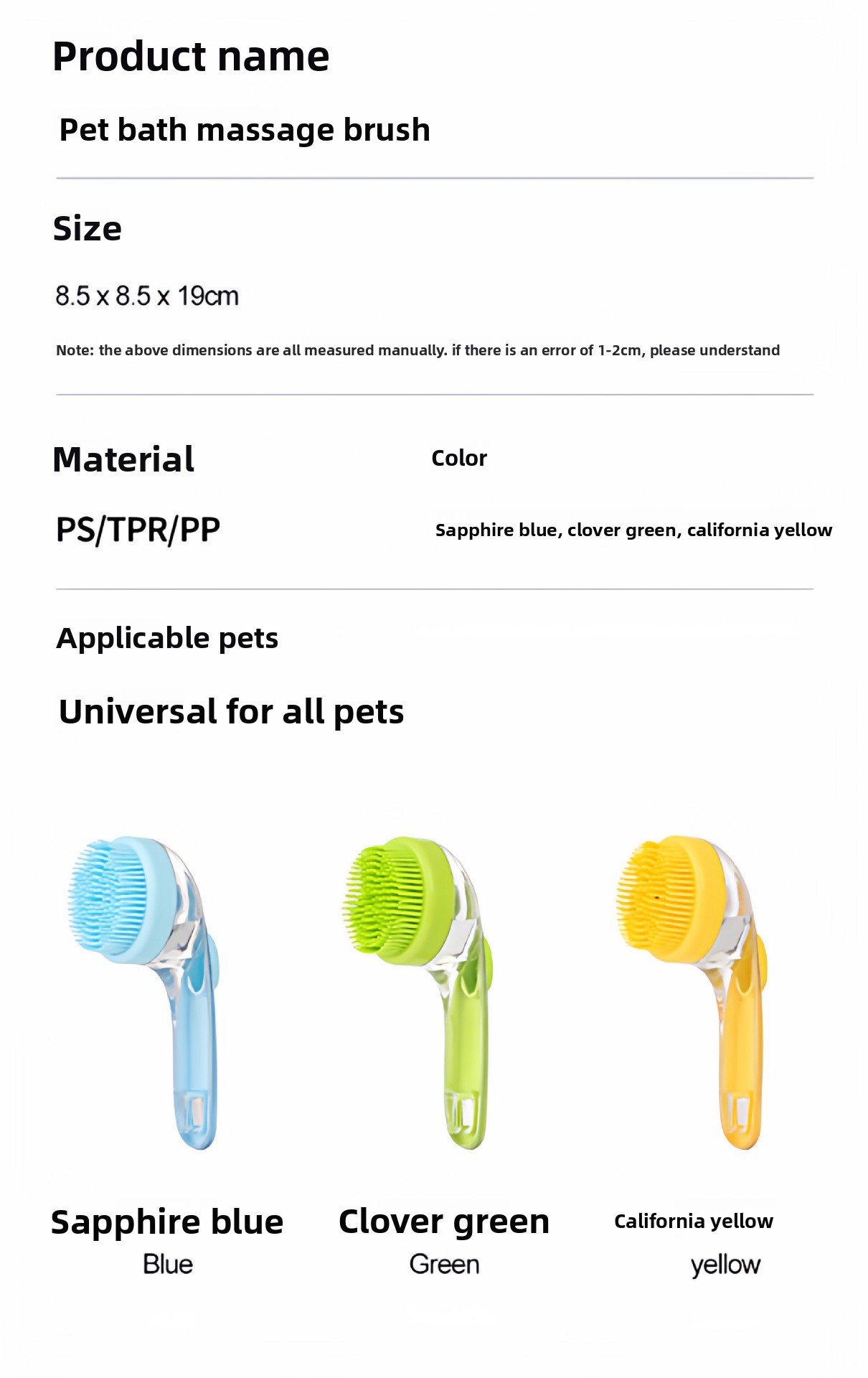 Massage Function: Features soft silicone bristles that provide gentle massage while bathing, promoting pet circulation and relaxation.